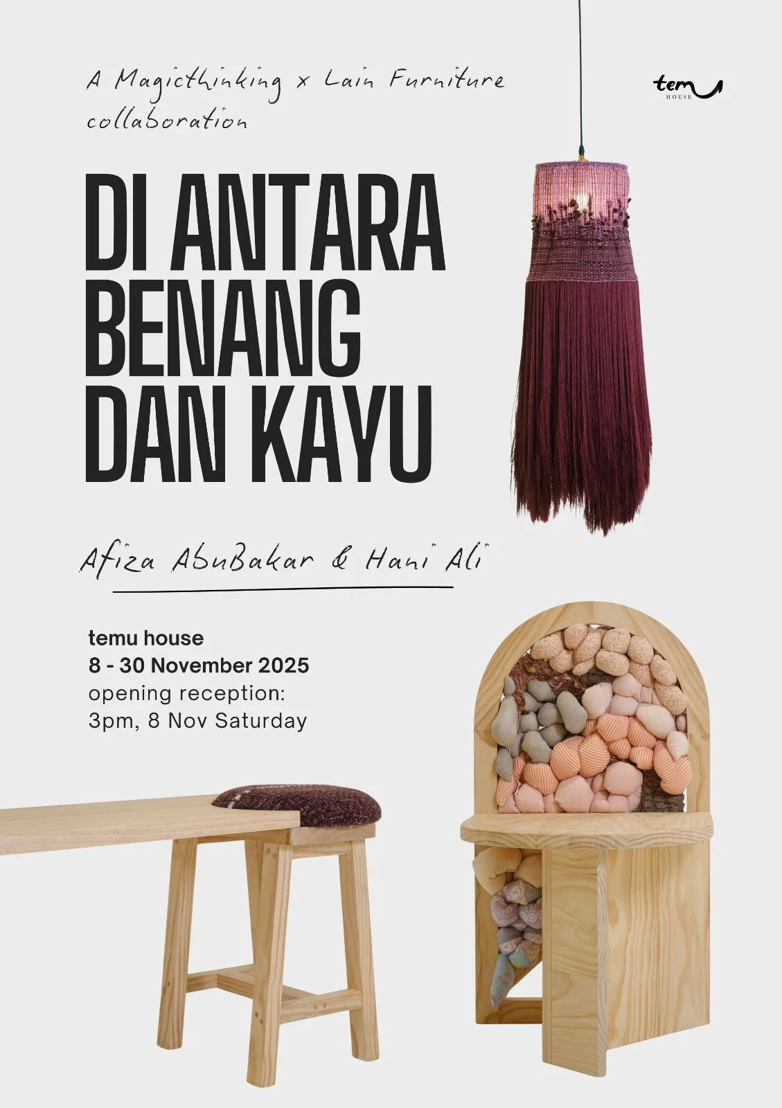 The collaboration between Afiza AbuBakar, the passion and hands behind Magicthinking, and Hani Ali, a carpenter and woodworker known for her bespoke furniture, brings together two creative mediums and ways of working that are distinct.